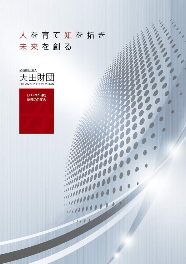 「人を育て 知を拓き 未来を創る」という運営理念のもと、天田財団が取り組む公益事業の目的や助成内容、沿革などをご紹介しています。本パンフレットを通じて、天田財団についてのご理解がさらに深まることを願っております。ぜひ、ご一読ください。
